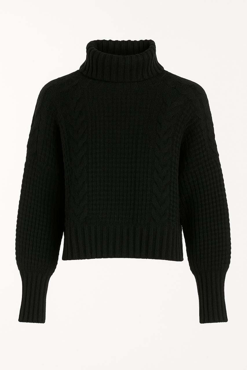 Essa blusa de tricô preta é a escolha perfeita para quem busca estilo e aconchego nos dias frios. Com gola alta canelada e tramas diferenciadas em padrão de trança, a peça transmite charme e sofisticação em qualquer look.
